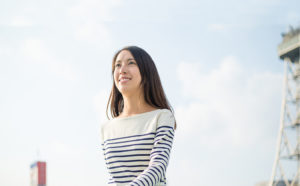 Woman walking in japanese city